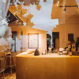 There is a big tree in the middle of the shop. It is suitable for sitting and chilling.