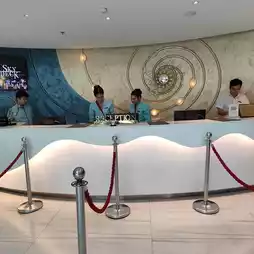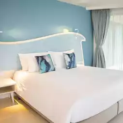 Centara Sonrisa, Sriracha accommodation, Chonburi is a small accommodation but very complete. I guarantee that if you bring your family to visit, you will definitely love this place. Let's just say that mom will get beautiful pictures while the kids will have fun playing in the water and playing with toys because it is complete. There is a kids zone, a game room, a pool for children and beautiful photo corners. Both the pool corner and the long bridge into the sea for us to take beautiful photos. Here, there are many rooms available. Breakfast is also good and not expensive. I highly recommend it.
