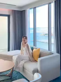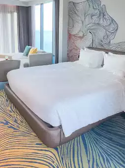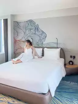Novotel Marina Sriracha, a 4-star hotel by the sea in Sriracha, the Junior Suite (Balcony, Sea View, 1 king size bed) is the only room type in the hotel that can see both the sea view and the city view of Sriracha from the bed.