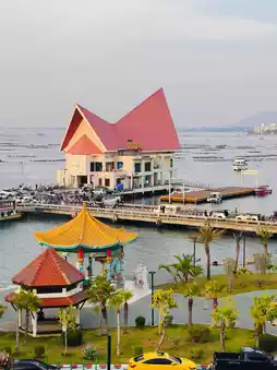 💕 Koh Loi, Sriracha is a small island connected to the shore by a bridge, making it easy to travel. The overall atmosphere is quiet and suitable for relaxation. There is a temple on the island for worship and prayer, and there is a beautiful sea viewpoint where you can see a panoramic view of Sriracha. In the evening, there is a market and many seaside restaurants to choose from, with live music to create a relaxing atmosphere.