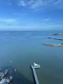 Staying in Sriracha, my favorite hotel must be Novotel. I like the room with a view of the sea as far as the eye can see. It gives a relaxing feeling. The room is beautiful, with complete facilities. The food in the lounge is okay. Breakfast is also okay. The staff provides good service. What I like the most is the pier bridge here. The bridge extends out. It is a very beautiful corner for taking pictures. I took pictures until I forgot the time. #Get a discount without relying on luck