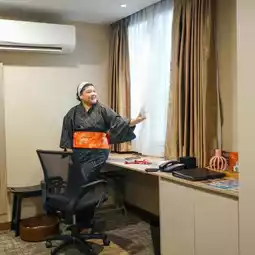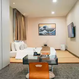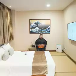 This hotel is located on the side of the road ❤️It is very convenient to travel because it is near the department store, convenience store, restaurant. It gives the atmosphere like we are really staying in Japan because everything in the room is decorated in a genuine Japanese style. Even the bathroom, bathtub, and toilet are Japanese style😀