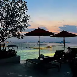 • The hotel does not have a beach, but there is a garden and a pier. You can walk and relax. The weather is good in the morning. In the evening, you can see the sunset.