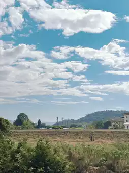 The view behind the hotel is the view of the train tracks. The ground floor has a swimming pool and a fitness center. In front of the hotel, there is a restaurant and a cafe. Or if you want to eat something in the Sriracha area, you can order through Grab or Lineman.