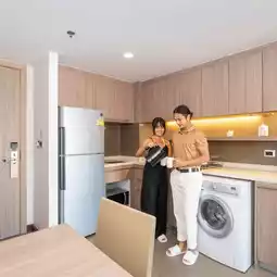 Wan and Fook stayed in a One-Bedroom Executive room. The room here is comfortable in a condo style with complete facilities, such as kitchenware, washing machine, TV, refrigerator, very complete. The room is divided into separate zones between the living room and bedroom.