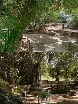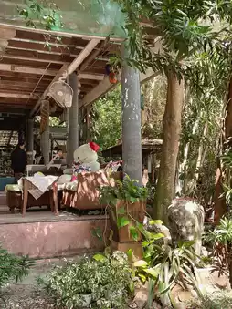 2. Zone under the trees - There are tables and chairs to relax on the edge of the bamboo forest. It's so shady.