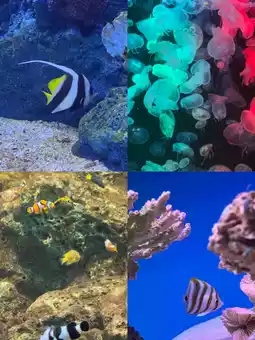 You will see colorful jellyfish floating around in a clear tank.