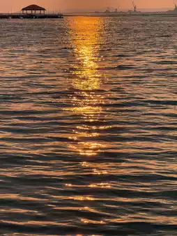 Golden light reflecting on the water Glittering like a scene in a movie