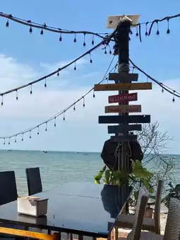 It is a beach cafe style restaurant and cafe located on the beach of Sriracha. The shop has a comfortable atmosphere on the beach of Sriracha.