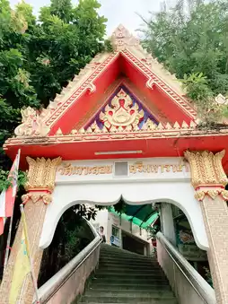 If anyone comes to visit Sriracha and stops by "Saphan Ko Loi", don't forget to walk up to Wat Ko Loi, which is located on a small hill on the island. The atmosphere is quiet, shady, suitable for worshiping Buddha, making merit, and relaxing from the chaos.