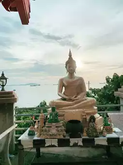 The way up to the temple has about 100 steps, a comfortable walk, and it doesn't take long to reach the highest point of the island. When you reach the top, you will find a large Buddha statue in the middle of a wide courtyard. You can worship and pray for good fortune. There is also a 360-degree panoramic viewpoint where you can see the Sriracha sea and the coastline in all directions.