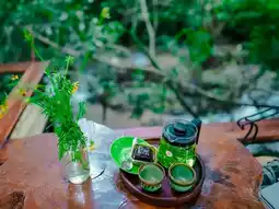 The Hidden Falls in the Secret Garden is a restaurant and café located in Bang Phra, Si Racha, Chonburi. It features a charming stream and a small waterfall called Chan Ta Thoen. The atmosphere is incredibly relaxing, with seating areas surrounded by a lush garden. Visitors can dip their feet in the stream or even take a stroll in the cool water. The café also has friendly goats that welcome guests, and you can feed them grass.