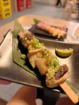 We ordered the Magoro Nikiri, Salmon Nikiri, Ebi Nikiri, Takoyaki, and Donburi. The food was incredibly fresh and delicious. There are so many Japanese restaurants around here, but if they weren't really good, it would be hard to survive. They also have live music in the early evening, playing fun folk songs. #JapaneseRestaurantSriRacha #JapaneseRestaurantChonburi #SriRachaRestaurant #WhatToEatInSriRacha
