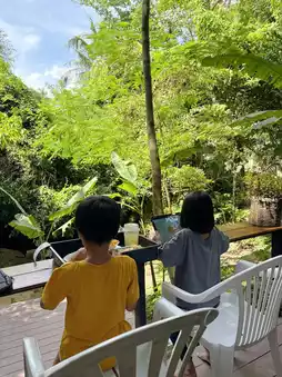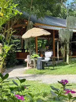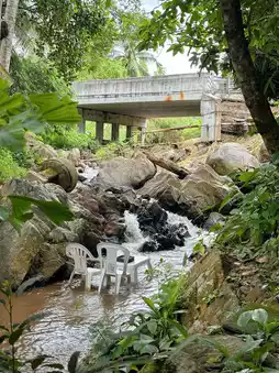 This cafe is called The hidden falls. The Thai name is "In the Secret Garden". If you search on Google Maps, search by the Thai name. We came on Saturday. There were a lot of people. All the seats in the stream were full. But there were still plenty of seats in other areas (the staff said that on Sundays, there are a lot of people. There are not enough seats).