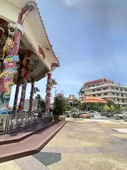 A tourist attraction near Bangkok, only 1 hour away. You can drive to the park. It is a viewpoint or take a ferry to Koh Sri Chang. This is a small island. There are many tourist attractions such as temples, Chinese shrines, shops, viewpoints, good air, wind blowing by the sea. There is a purple floating bridge. In the evening, the atmosphere is very good. Watch the sunset. It is considered a place to relax. The temple on the top of the hill can be visited to worship and enjoy the view.
