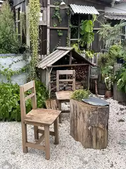 The highlight of this shop is its simple decor, with plenty of cute photo spots. It's a wooden house that blends in with the natural surroundings. The shop is dotted with large and small trees, and the decorations are well-placed, creating a homey and shady atmosphere. It's so cute! 🫶🏻