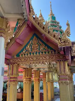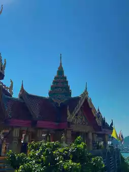 The chapel door is also interesting. The temple has carved a deity or angel to guard the sacred objects within the chapel or shrine of Luang Por Koh Loi. Outside, the gilded Ganesha resides. He can be used to pray for all kinds of blessings, especially for career advancement. Finally, find a beautiful vantage point for 360-degree panoramic photos.
