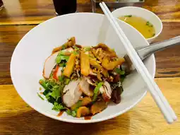 🎉🍜💓 Share this delicious restaurant! This shop sells wonton noodles in soup, dry wonton noodles, and red pork rice. Regular is 50 baht, special is 60 baht. Loaded with toppings and generous portions, delicious, clean, and high-quality ingredients.