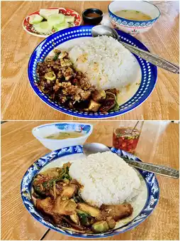 🎉🍛🍜Don't miss this delicious restaurant! #CookedToOrder #JungleFood #Noodles - delicious and affordable, starting at only 40 baht. The restaurant offers a wide variety of dishes using premium ingredients, including a spicy and flavorful curry paste, shrimp paste, and fresh vegetables. Free! Homemade pork rinds. The lovely owner, Auntie Lai, is ready to serve delicious dishes. The restaurant is spacious, clean, and has a great atmosphere. Good service and parking is available. 💓Ann comes here often and the food is truly delicious. This is another delicious restaurant in Sriracha. Don't miss it!