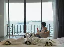 We stayed in a Deluxe Sea View room with a high-angle view of the sea. We saw a 180-degree view of the sea. Just follow the rules and you will have a chance to relax here for free!!!
