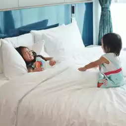 Here there is a fitness center, onsen, a pool with a sea view, a full breakfast buffet with a variety of food, and a kids club. 🐻🥅
