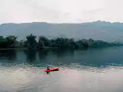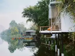 After having a lot of beer, pork, and looking at the stars, it was time to pass out! And for us salaried people, we automatically woke up at 6am. 555555 We got to watch the sunrise too ~ The man went boating for a while. 🛶 He let us take pictures to our heart's content. Then we went to have breakfast. Here, they let us choose whether to eat rice porridge or just bread, tea, or coffee. Let's grill it.
