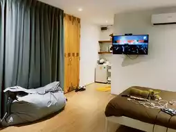 After checking in, we changed into comfortable clothes. Men's ready-to-go water outfit 😂 As for us, it was that time of the month, so we missed it. So sad ~ After taking a satisfying shower, we ordered a barbecue pork to eat. We got two more bottles of beer. We still couldn't get drunk. 555555 !!! But no matter how drunk we were, we still felt like sleeping and looking at the stars. We dragged the sofa in the room out to sit outside. The atmosphere was sooooooo romantic, times a million. Sleeping and looking at the stars made my heart feel so peaceful. Mom, I want to stay here longer.