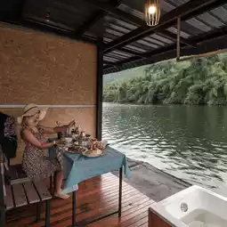 Sleep by the Kanchanaburi river, free wet rafting, air-conditioned tub