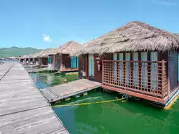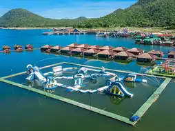 Start with a beautiful Maldives-style accommodation with Ruknam Resort, a luxury resort located in Si Sawat District, above the Srinakarin Dam. The atmosphere is surrounded by natural views of mountains and rivers. There are 2 zones of rooms available, including rooms for couples and families. The floating house zone is special because you can play in the water right in front of your room. For those who like privacy, we recommend the houses in the hillside zone. In addition, there is a water park with fun rides for you to have fun. There is also a restaurant. No need to go anywhere. #Kanchanaburi