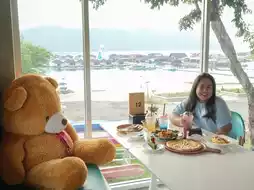 Santorini Cafe offers a million-dollar view where you can enjoy your meal and sip on drinks in a cool, air-conditioned environment while taking in the stunning view of the Srinakarin Dam. There's also a playground for kids to have fun.