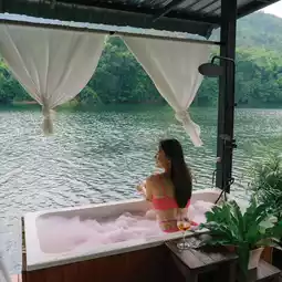 In front of the room, you can see the water view. You can soak in a bubble bath in front of the room.