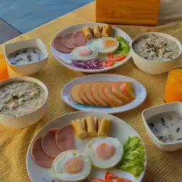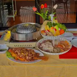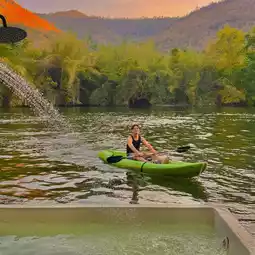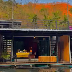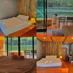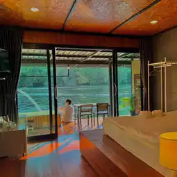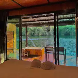 This is a raft house with a great atmosphere. It feels like you are surrounded by nature. You can row a boat in front of your room and chill. We really like the mood in the evening. The mountain and river views are the best.