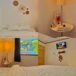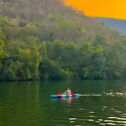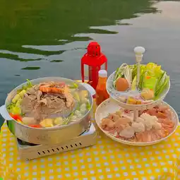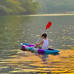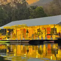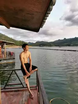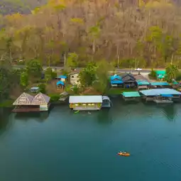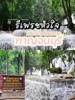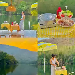 Go to sleep in a floating house near Erawan Waterfall. This place has been newly opened for a short time. The interior is decorated in a minimalist style. There are many cute photo spots. The atmosphere is super good, quiet, and very close to nature. In the evening, eat delicious grilled pork and watch the sunset. It heals your heart to the max. 🫶🏻🛶🏞️