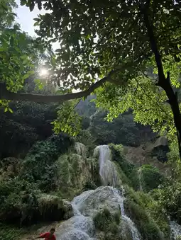 Erawan Waterfall, Kanchanaburi has an entrance fee of 60 baht for adults and 30 baht for children. Anyone who wants to swim must wear a life jacket for safety. They have life jackets for rent for 20 baht per person. There are 7 levels of the waterfall. Each level has its own unique beauty. Each level has its own name. The atmosphere is shady and cool. It is perfect for relaxing. I recommend coming early in the morning. Otherwise, you won't be able to walk to level 7. I recommend that those who are physically fit walk up to level 7 because each level has its own unique beauty.