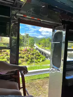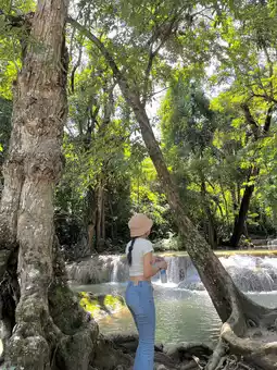 When you reach Kanchanaburi Bus Terminal, you can take a bus to Erawan Waterfall for 50 baht. It takes about 1 hour and 30 minutes, but the view along the way is very beautiful. Sit and enjoy the view until you arrive. #TravelKanchanaburi #ErawanFalls
