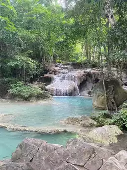 Erawan Waterfall, Kanchanaburi Province is another province with a lot of tourist attractions, especially Erawan Waterfall, which is visited by many Thai and foreign tourists. You can go in groups or with your family. The journey is very easy. The weather along the way is very good. You can go with a budget of 1,000 baht.
