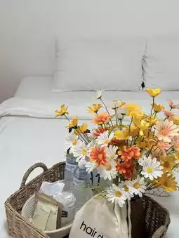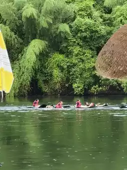 > Visit a must-check-in popular cafe!! Beautiful photo spots > Adorable Muji-style floating accommodation on a riverside raft ❤️ with fun rafting activities > and experience nature at Erawan Waterfall, the crystal clear blue waters, with a foot spa with fish 🐟