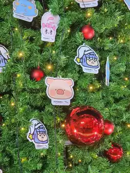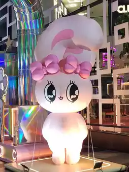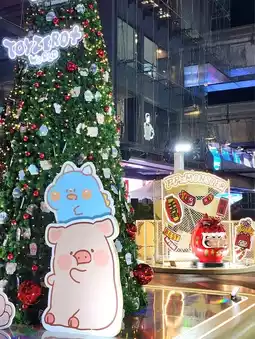 #SeeChristmasLights In December, let's go see the Christmas lights at Siam. The Christmas tree at Siam Center is now set up. This year, it's in the Art Toy Factory theme, in collaboration with the TOYZERO+ brand. The Christmas tree is decorated with Art Toy cards and large-sized popular characters are on display, especially LuLu the Piggy, a pink pig hugging a gift box, and Esther Bunny, a very cute pink rabbit. You'll definitely get cute photos to take home.