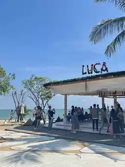 ☀️ Luca Beach Club in Sichon, Nakhon Si Thammarat's hottest beachside cafe, has a truly amazing vibe, almost like being in Bali. The shop is beautifully decorated and has plenty of photo spots everywhere. If you're a photography lover, this is heaven.
