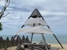 Hello everyone! Today, I'm going to review a beautiful cafe in the Sichon area of Nakhon Si Thammarat. This cafe is right by the sea and has a great atmosphere. There's plenty of seating, parking, and a diverse drink menu. There are plenty of beautiful photo spots. You really have to visit at least once! It's truly beautiful.