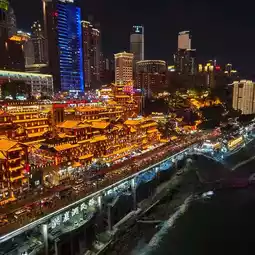 The cableway is not highly recommended. The night view of Hongya Cave is quite beautiful, but it is very crowded. It is suggested to take photos on the bridge and then walk to the other side to take the subway. There are many small stalls along the bridge.