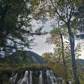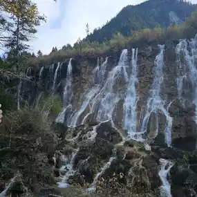 The Nuorilang Waterfall is one of Jiuzhaigou's most famous landmarks, located in the Rize Valley section. It is one of Sichuan's largest waterfalls, standing at an altitude of 2,365 meters, with a width of 270 meters and a height of 24.5 meters. As one of China's major travertine waterfalls and the widest waterfall in the country, it presents a magnificent natural spectacle.