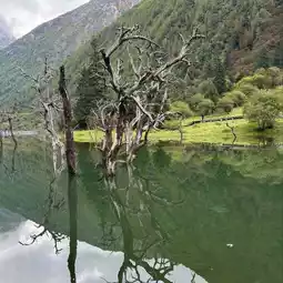 #chinatravel Exploring Longzhucuo Lake in Sichuan was like finding a hidden jewel tucked between the peaks. The water is so clear and still that it mirrors the sky perfectly, with snowy mountains and pine forests framing the edges like a painting. The walk to the lake is peaceful, with crisp mountain air and the occasional flutter of prayer flags adding a splash of color to the landscape.