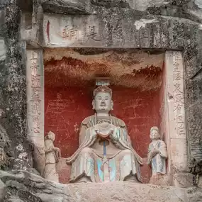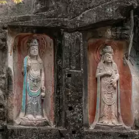 If you’re looking for an off-the-beaten-path cultural gem in Sichuan, the South Grotto in Bazhong should be on your list. Located on a massive cliff just minutes from the city, it’s easy to explore at ground level — no steep climbs required. You’ll see over 2,700 stone-carved figures dating back more than a thousand years, from serene Buddhas to the iconic “Grass-Shoe Heavenly King.” The artistry here tells stories of faith, culture, and daily life from the Tang dynasty onward.