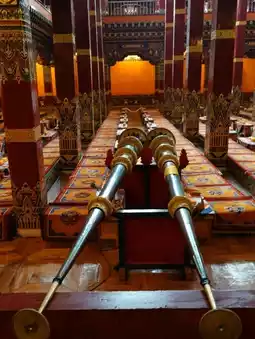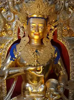 At Muya Monastery, also known as Tashi Gonsar Monastery in Sichuan, there stands a magnificent golden statue that shines brightly against the mountain sky. The statue, representing a revered Buddha, reflects peace, wisdom, and compassion. Its grand size and fine details show the deep devotion of Tibetan Buddhism. Surrounded by colorful prayer flags and the sound of chanting monks, the statue creates a powerful sense of calm and spirituality. Visitors often feel awe and serenity while standing before it, as if time slows down in the presence of such sacred beauty.