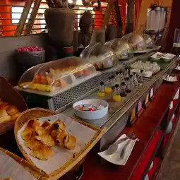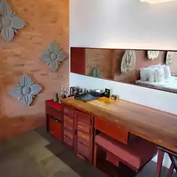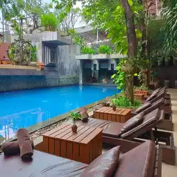 Siem Reap is a tourist base city for the Angkor Wat ruins in Cambodia, and there are countless different hotels. The Golden Temple Residence stands out among them. The hotel exterior has the atmosphere of a tropical resort hotel, and the alley leading to the entrance has a hideaway-like atmosphere. The entrance is a complete contrast, with a boldly modern design that incorporates Cambodian elements, and the objet d'art accessories and decorations are Cambodian. The head of the Buddha statue based on the Angkor ruins is surprising, but it harmonizes with the entrance and adds an accent. The welcome drink comes with sweets, and you can eat and drink while checking in and receiving a hotel explanation for about 15 minutes. The guest rooms are in the same tone. The bathroom is spacious and easy to use. The veranda is full of tropical atmosphere. The breakfast buffet has a wide variety of items, and also includes large, roughly cut mangoes. The biggest selling point of this hotel is its hospitality. All the staff are polite and friendly, and it's a pleasure to interact with them. They will respond to your various inquiries politely, and you can arrange various things just by being at the hotel. If you arrive on an early morning flight, you can use the set of "early check-in, traditional Cambodian meal set, spa" at a low price. This is a recommended hotel for staying in Siem Reap.
