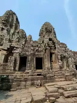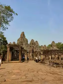 Bayon Temple is located in the heart of the ancient city of Angkor Thom, which was the symbolic center of the Khmer empire.