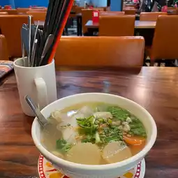 The soup's warmth soothes my soul's desire,