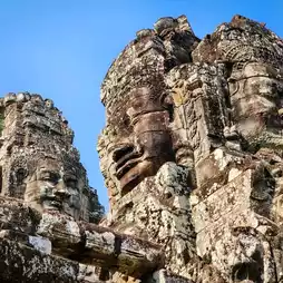 Immersed in ancient mystique, Bayon Temple is a mesmerizing journey through Cambodia's rich history. Its towering stone faces whisper tales of kings and gods, while intricate carvings weave a tapestry of wonder. A must-visit for any explorer seeking to uncover the secrets of Angkor. Bayon is a must-see for anyone visiting Siem Reap. Make sure to wear comfortable shoes and watch out for the monkeys!