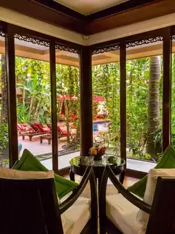 Step into a world where traditional aesthetics meet modern comfort. The hotel's rooms boast stunning interior designs that reflect the rich Cambodian heritage, matched with top-notch amenities for that cozy, pampered feel. 🛏️✨ From the lush gardens to the tranquil swimming pool view, your senses are in for a treat.
